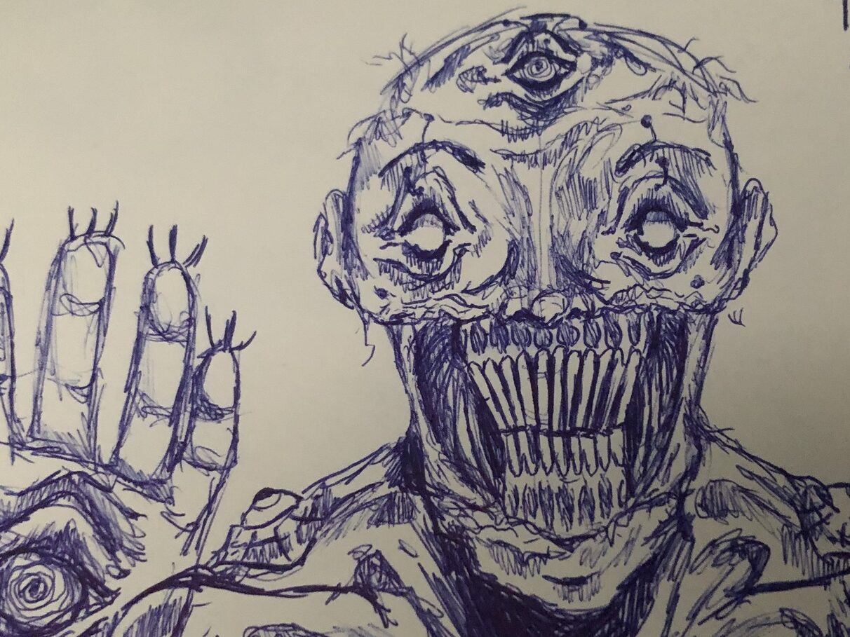 Here is my concept art for a stamp illustrator project. My theme was body horror and I created 4 variations of body parts I could put emphasis on and horrify.